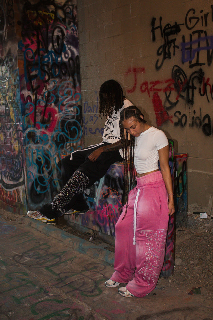 VEDERE BLACK DOUBLE WAISTED SWEATS